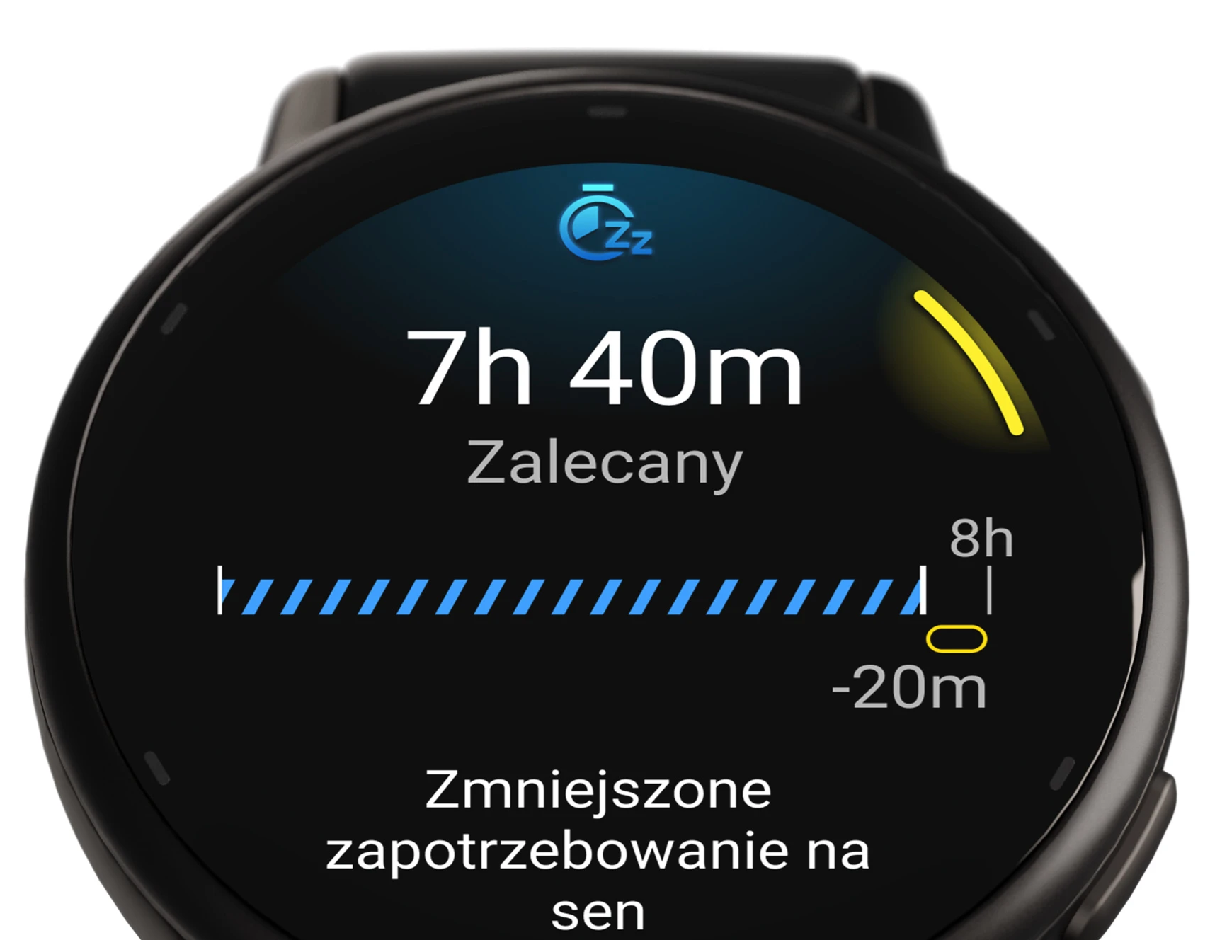 Uzyskaj kompleksową analizę swojego odpoczynku. Asystent Snu dostarcza ocenę jakości snu oraz spersonalizowane zalecenia dotyczące jego potrzebnej ilości. Zegarek automatycznie monitoruje i rejestruje drzemki, analizując ich korzyści dla organizmu, a także śledzi poszczególne fazy snu. Podczas snu mierzony jest również status zmienności tętna (HRV). Funkcja "Korzyści z treningu i czas odpoczynku" pomaga zrozumieć, jak każda sesja wpływa na organizm i ile czasu potrzeba na pełną regenerację.