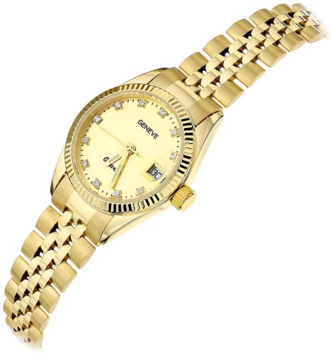 Zegarek złoty 585 z okrągłą tarczą, diamentowaniem i cyrkoniami