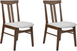 2 krzesła drewniane w stylu retro. Odmień swoją przestrzeń dzięki eleganckiemu zestawowi dwóch krzeseł, które harmonijnie łączą klasyczny design z rustykalnym urokiem. Solidna podstawa z naturalnego drewna kauczukowego nie tylko zapewnia stabilność, ale także zachwyca widocznymi sękami, dodając całości unikalnego charakteru. Siedziska, obite trwałą i stylową tkaniną, gwarantują komfort oraz wyjątkowy wygląd. Doskonałe zarówno do jadalni, jak i salonu, te krzesła wprowadzą ponadczasowy styl i funkcjonalność do każdego wnętrza.