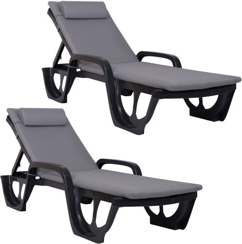 Zestaw 2 leżaków ogrodowych Keter FLORIDA antracyt z poduszkami Bazkar MADERA S-23