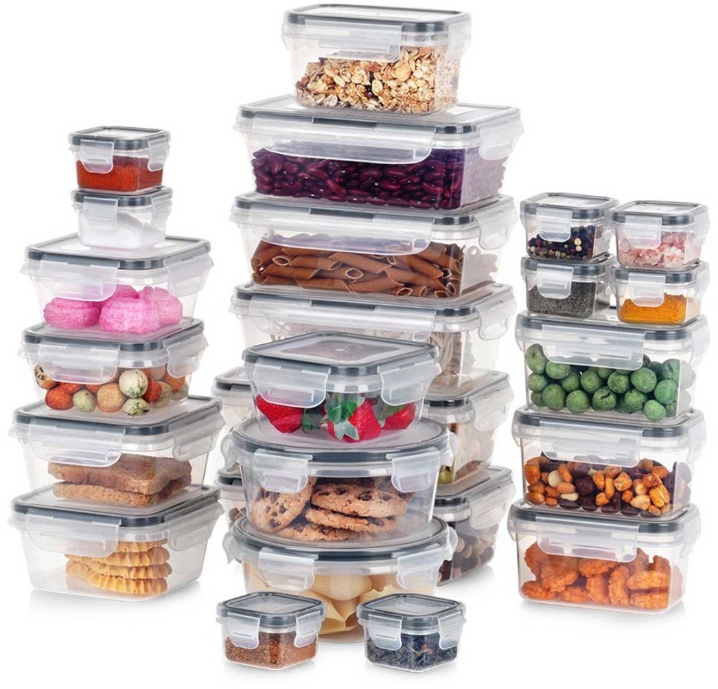Zestaw 24 pojemników kuchennych w 7 różnych rozmiarach. Idealne do przechowywania żywności oraz produktów sypkich. Nadają się do zmywarki, lodówki, zamrażarki oraz mikrofalówki. Zestaw 24 pojemników na żywność - Zestaw 24 szt. pojemników kuchennych z pokrywkami do przechowywania żywności i produktów sypkich. W zestawie pojemniki w 7 różnych rozmiarach. Solidne i wytrzymałe - Wykonane z najwyższej jakości, wytrzymałego tworzywa w przezroczystym kolorze. Uszczelka wykonana z gumy w kolorze czarnym. Bezpieczne dla zdrowia i neutralne dla żywności. Szczelne zamknięcie - Pokrywki są wyposażone w cztery solidne zatrzaski, które umożliwiają pewne zamknięcie. Dodatkowo, pokrywki posiadają uszczelkę, która zapewnia szczelność i świeżość przechowywanych produktów. Uniwersalne zastosowanie - Pojemniki świetnie sprawdzą się do przechowywania oraz przenoszenia żywności. Możemy umieścić w nich dowolną żywność. Idealne do przechowywania sypkich produktów, wędlin, sałatek, owoców, różnego rodzaju potraw czy przekąsek. Pojemniki możemy wykorzystać także do przechowywania różnego rodzaju akcesoriów. Odpowiednie do mikrofalówki, zamrażarki i zmywarki - Pojemniki są odporne na niskie i wysokie temperatury (od -20°C do +100°C). Nadają się do mycia w zmywarce do naczyń. Żywność w pojemnikach możemy przechowywać w lodówce, a także w zamrażalce. Nadają się również do mikrofalówki, możemy podgrzewać w nich potrawy bez pokrywki. W zestawie: 3x pojemnik kwadratowy o wymiarach 11 x 11 x 6 cm i pojemności 350 ml, 2x pojemnik kwadratowy o wymiarach 12 x 12 x 6,5 cm i pojemności 550 ml, 8x pojemnik kwadratowy o wymiarach 6 x 6 x 4 cm i pojemności 60 ml, 3x pojemnik prostokątny o wymiarach 18 x 11,5 x 6,5 cm i pojemności 840 ml, 2x pojemnik prostokątny o wymiarach 19 x 12 x 6,8 cm i pojemności 1 l, 4x pojemnik prostokątny o wymiarach 12,5 x 8 x 7 cm i pojemności 320 ml. 2x pojemnik okrągły o wymiarach 14,5 x 7 cm i pojemności 700 ml. Przydatne w każdej kuchni. Pozwolą na odpowiednie przechowywanie produktów, wprowadzając ład i porządek do kuchni. Wyprodukowano zgodnie z europejskimi standardami.