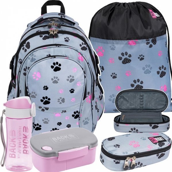 Komplet plecak szkolny 3w1 St.Right idealny dla dziewczyn uczęszczających do szkołyW skład zestawu wchodzi:plecak szkolnypiórnik szkolnyworek na obuwieProducent: St.MajewskiKolekcja: CatsModel: BP01Paws PC01Paws SO01PawsOpis Plecaka Szkolnego4 przegrody główne zapinane na zamek,duża przegroda zapinana jest ma zamek, który pozwala na założenie zabezpieczenia kłódkowego lub z szyfrowaniem TSA,w przedniej komorze rozbudowany organizer z kieszenią na zamek oraz zaczep do kluczy,dwie kieszenie po bokach plecaka z elastycznej siateczki np. na bidon,wygodne i szerokie szelki profilowane z regulacją długości, wypełnione pianką pokryte od spodu siateczką,wygodny i praktyczny uchwyt górny do przenoszenia plecaka,wyprofilowane i wzmocnione pianką plecy, pokryte ergonomicznie siateczką zapewniającą przepływ powietrza,trwałe i wygodne w użyciu zamki przystosowane do częstego używania,plecak mieści swobodnie format A4,elementy odblaskowe,wyjście na słuchawki,wzmocniony gąbką spód plecaka,wysokiej jakości, mocny, odporny na wilgoć materiał - polyester 600D,Wymiary:wysokość 43 cmszerokość 32 cmgłębokość 21 cmWaga: 880 gPojemność: 23 lOpis piórnika szkolnego:jedna pojemna komora,zapinany na zamek dwukierunkowy,duża pojemność, klapka wewnętrzna z mocowaniami na akcesoria szkolne,w środku także przegroda zapinana na zamek,sztywne boki,bez wyposażenia,ciekawe, modne i oryginalne wzornictwo,wymiary: 23x9,5x6 cmOpis worka na obuwie:ściągany sznurkiem,można założyć go na plecy i nosić jak plecak,wodoodporny i trwały materiał poliester,modne i ciekawe wzornictwo w sam raz na wyprawkę szkolną,wymiary: 43x34 cmSt.Majewski jest bardzo dużym producentem artykułów szkolnych na rynek Polski i zagraniczny, dzięki wieloletniemu doświadczeniu, ich produkty są jednymi z najlepszych, zdobywcami wielu nagród na świecie. Wyjątkowy jest także spory asortyment (plecaki, piórniki, worki, torby, torebki....) a różnorodność kolorów i wzorów daje spory wybór uczniowi podczas kompletowania wyprawki do szkoły....