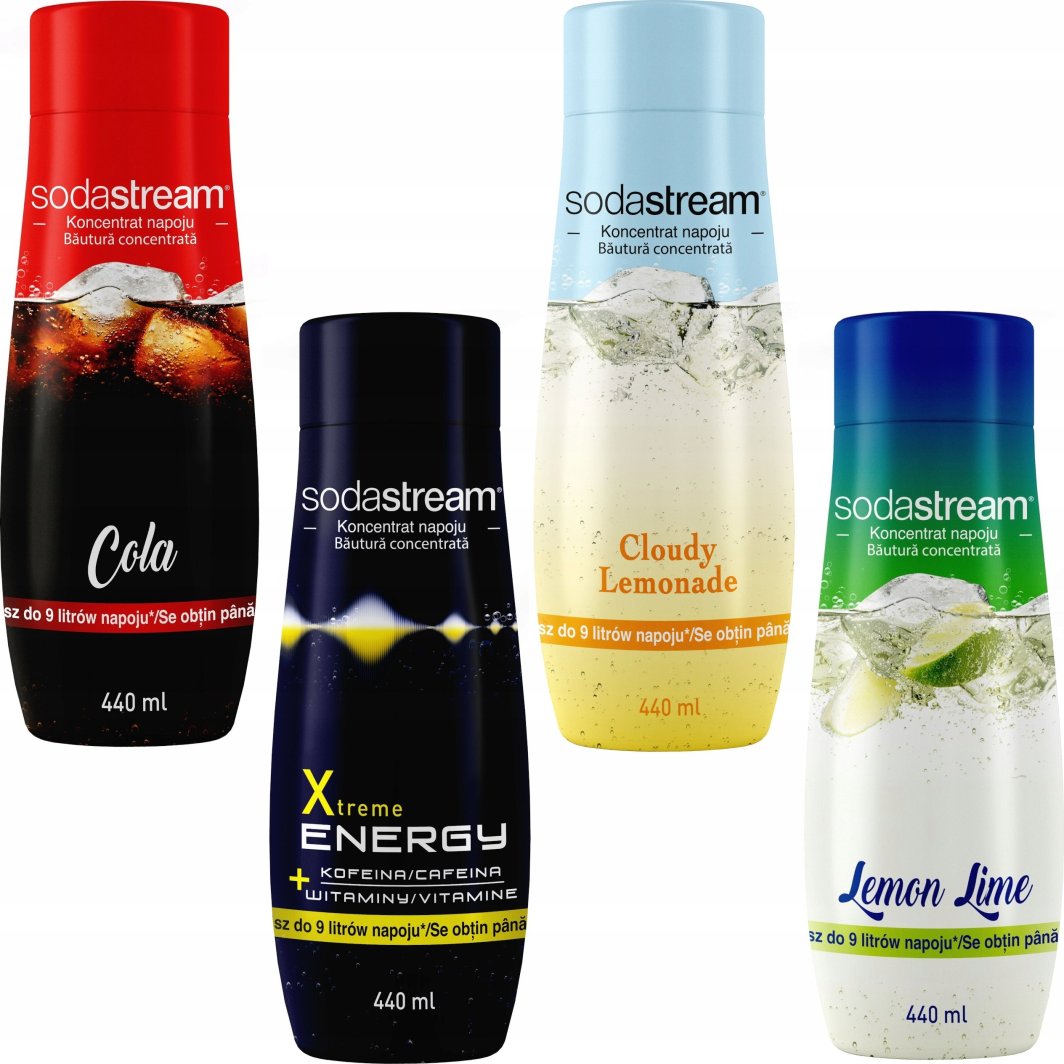 Zestaw 4 koncentratów SodaStream Cola+Energy+Lemonade+Lemon-Lime