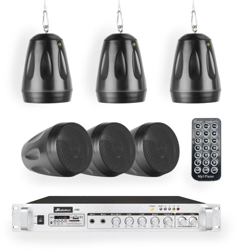 Zestaw czarnych głośników wiszących 6 x 5.5" AW32-B ze wzmacniaczem Audioport Gamma Black to znakomite rozwiązanie dla tych, którzy pragną eleganckiego i funkcjonalnego systemu nagłośnienia. Doskonale sprawdzi się w różnych przestrzeniach, takich jak restauracje, biura, sklepy czy szkoły, oferując nie tylko wysoką jakość dźwięku, ale również nowoczesny design, który harmonijnie wkomponuje się w estetykę współczesnych wnętrz.