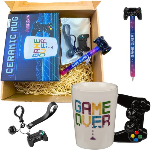 Zestaw dla Gracza - Kubek GAME OVER + Długopis z Kontrolerem + Czarny Brelok z Padem