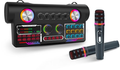 Kolorowe podświetlenie przycisków i głośników dodaje atrakcyjności wizualnej, a efekty świetlne wzbogacają atmosferę każdej imprezy. To doskonały sposób na stworzenie niezapomnianego klimatu podczas karaoke czy streamingu.