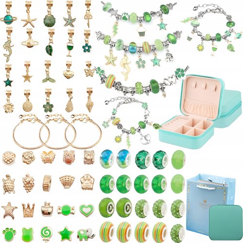 Zestaw Do Tworzenia Robienia Biżuterii, Bransoletek, Charmsy, Zawieszki, Koraliki ODCIENIE ZIELENI