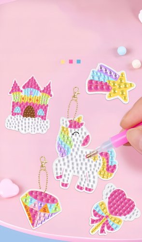 Praca z zestawem do zawieszek jednorożce rozwija umiejętności manualne dzieci oraz ćwiczy ich koncentrację. Precyzyjne naklejanie kryształków to doskonały sposób na poprawę motoryki, co jest niezwykle ważne w tym wieku.