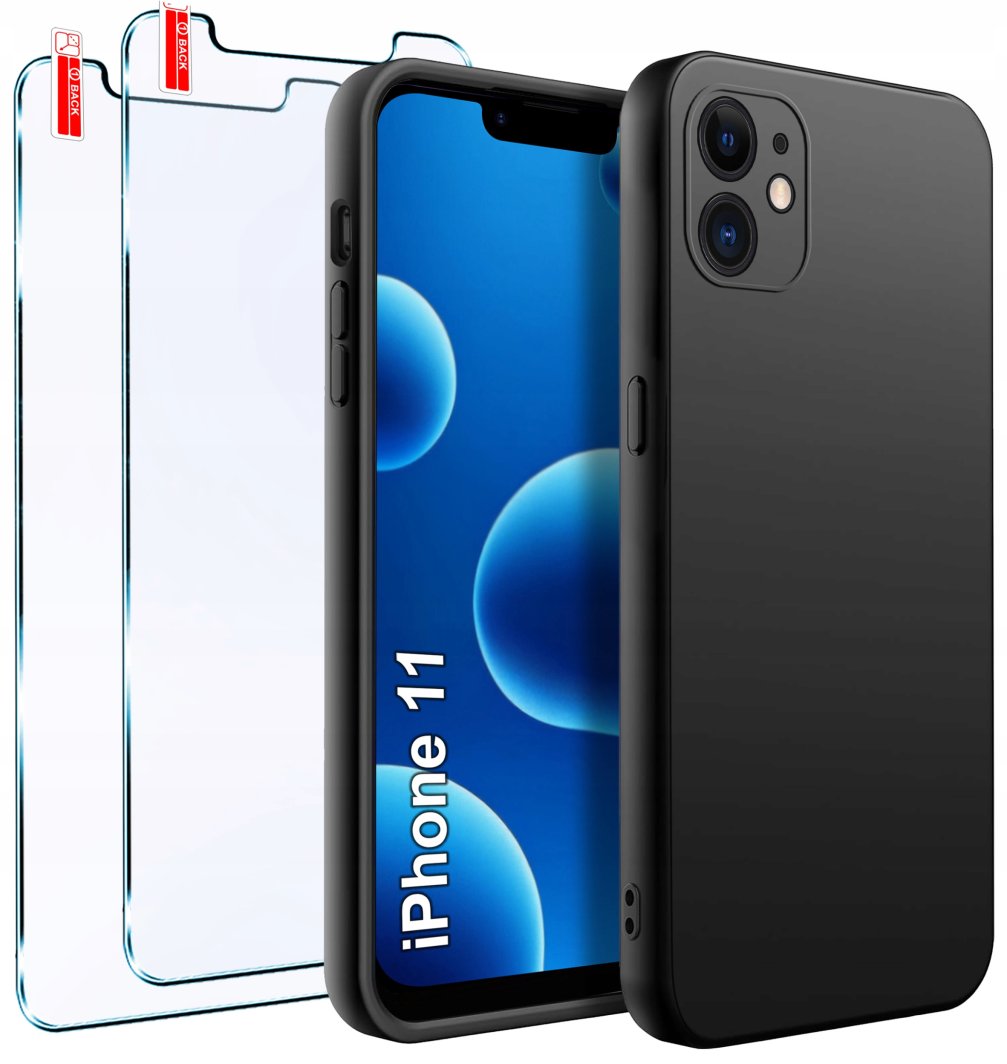 ZESTAW Etui do iPhone 11 | Matowe Czarne Silikon Slim + 2 SZTUKI SZKŁO