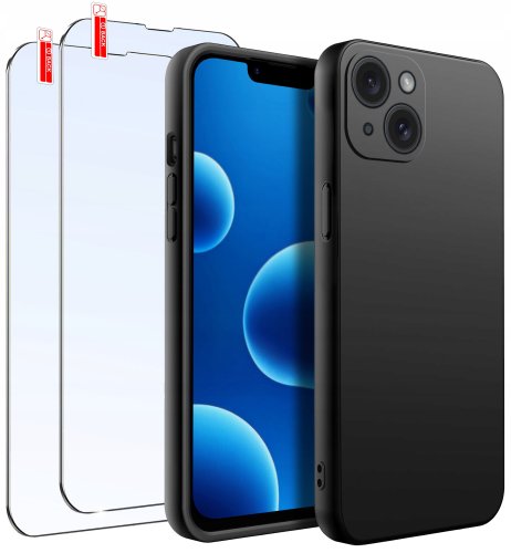 ZESTAW Etui do iPhone 13 Mini | Matowe Czarne Silikon Slim + 2 SZTUKI SZKŁO
