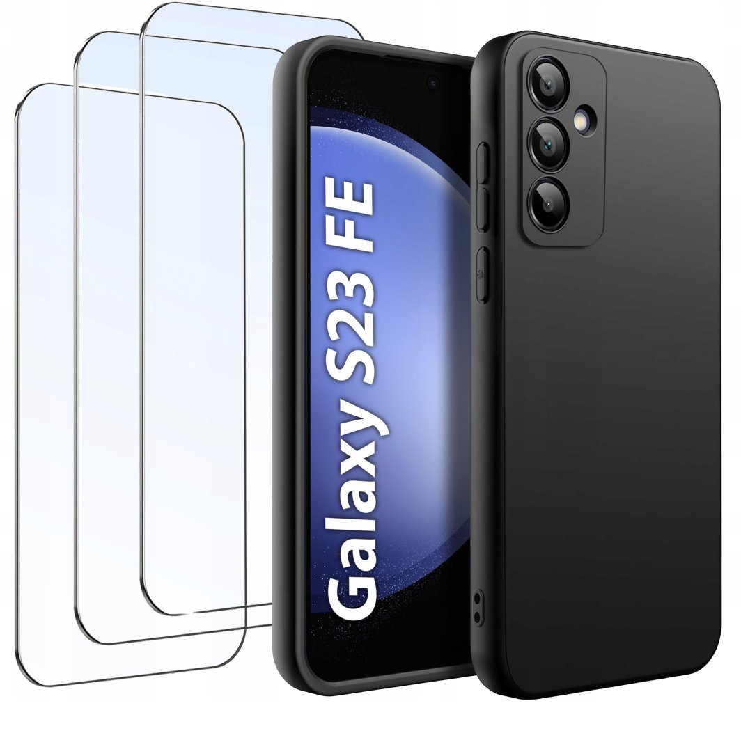 ZESTAW Etui do Samsung S23 FE Matowe Czarne Silikon Slim +3 SZTUKI SZKŁO
