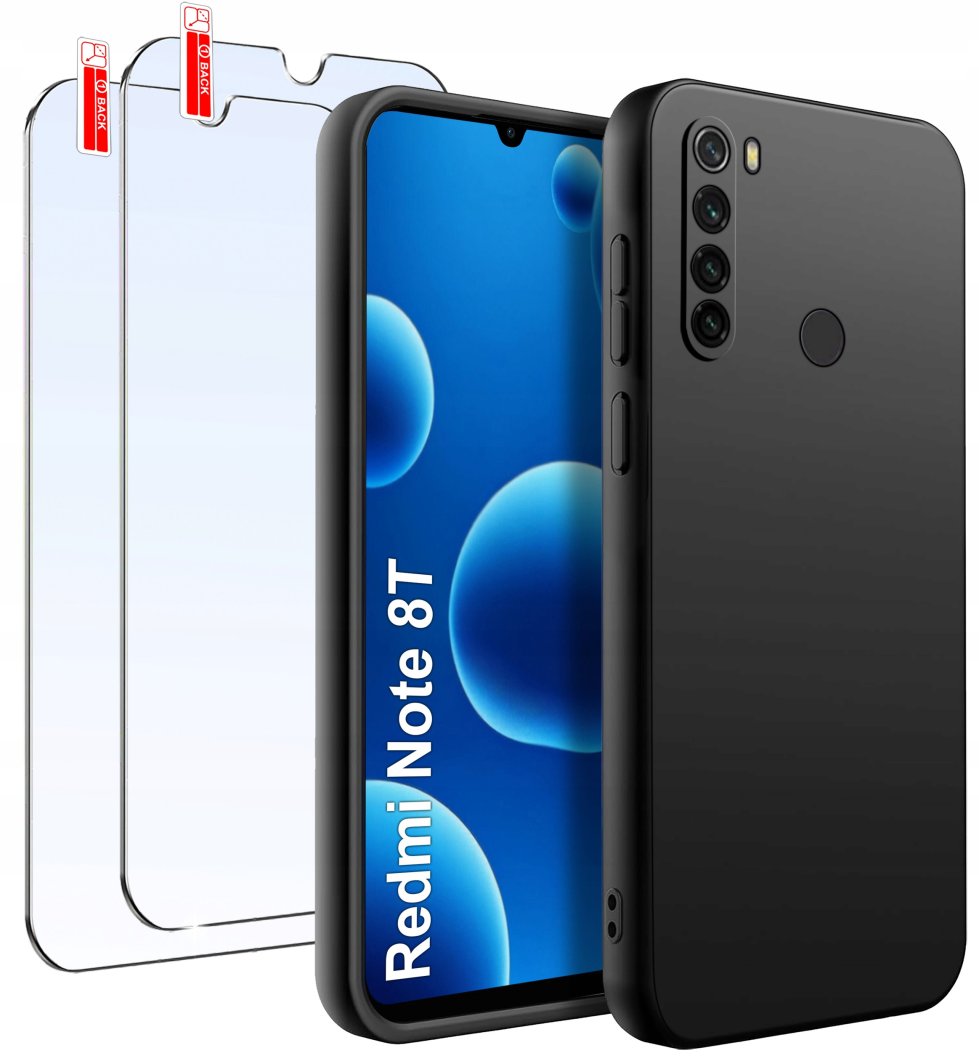 ZESTAW Etui do Xiaomi Redmi Note 8T Matowe Czarne Silikon Slim +2 SZT SZKŁO
