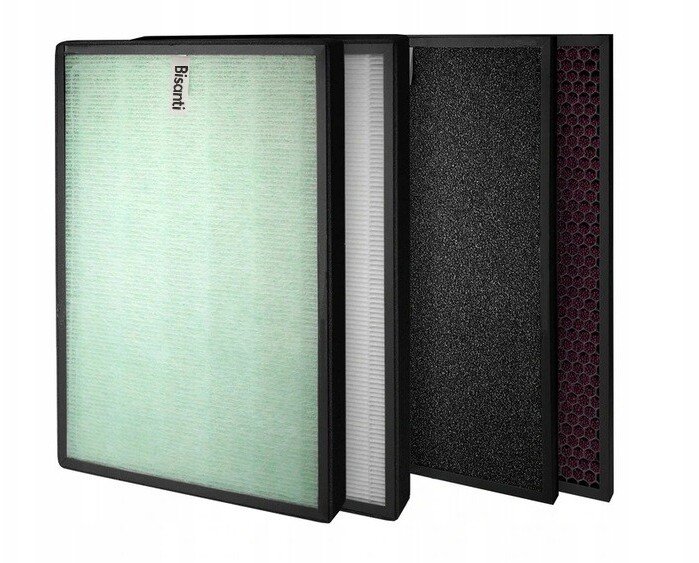 Filtr HEPA z warstwą katalityczną stanowi kluczowy element zestawu, skutecznie zatrzymując alergeny oraz bakterie.