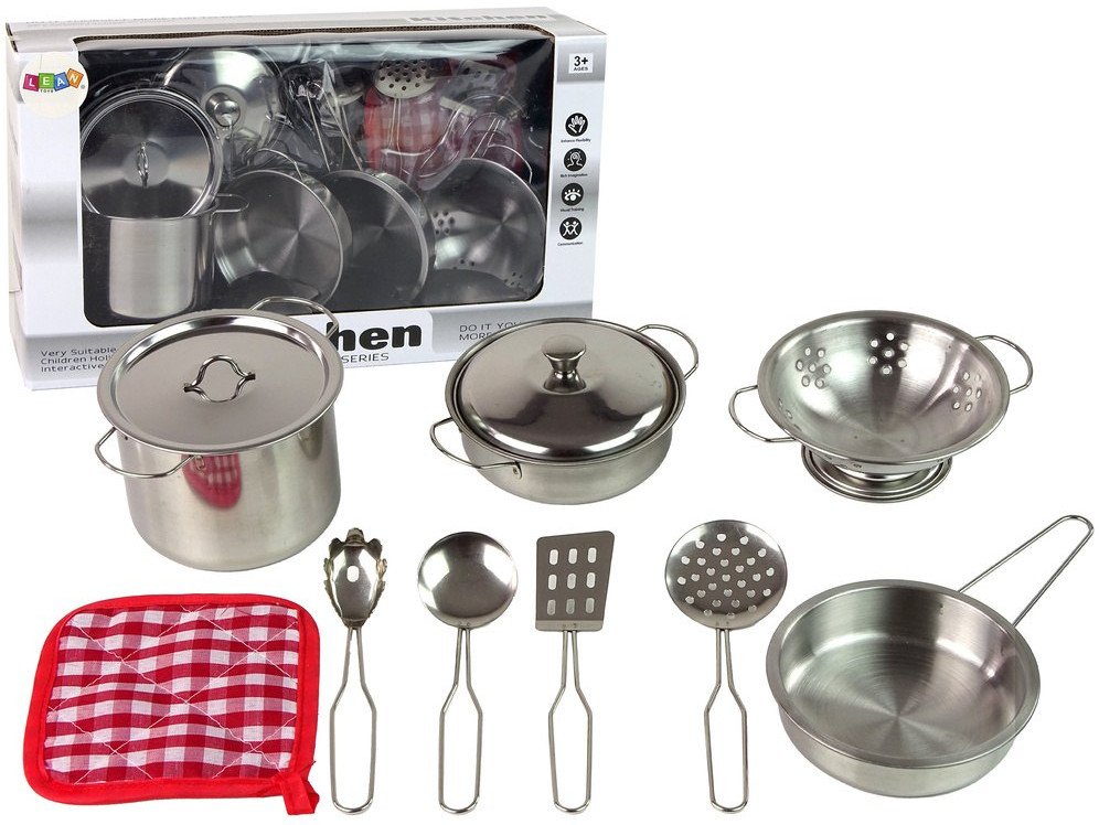 Nasz zestaw metalowych garnków i akcesoriów kuchennych to idealna zabawka dla małych kucharzy. W zestawie znajdziesz wszystko, co potrzebne do odgrywania wspaniałych scenek kulinarnej twórczości.