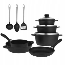 Zestaw SYMPHONY AMBITION składa się z 12 elementów, w tym garnków o różnych pojemnościach oraz akcesoriów kuchennych, co czyni go kompletnym rozwiązaniem dla każdego kucharza. Dzięki różnorodności rozmiarów garnków, możesz dostosować je do swoich potrzeb kulinarnych, niezależnie od tego, czy przygotowujesz małe danie, czy większy posiłek dla rodziny.