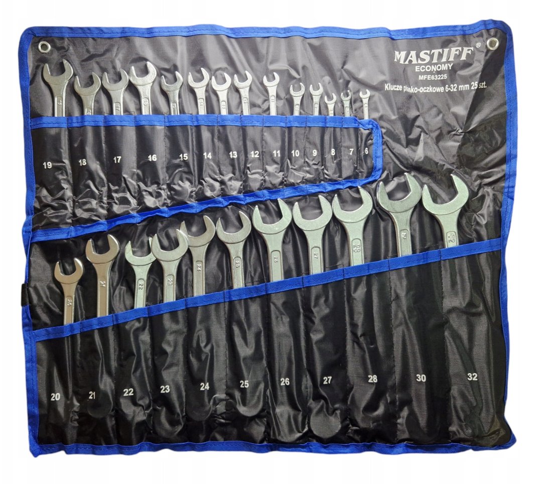 ZESTAW KLUCZY PŁASKO-OCZKOWYCH 6-32 MM 25 SZT. KLUCZE OCZKOWE ETUI MASTIFF