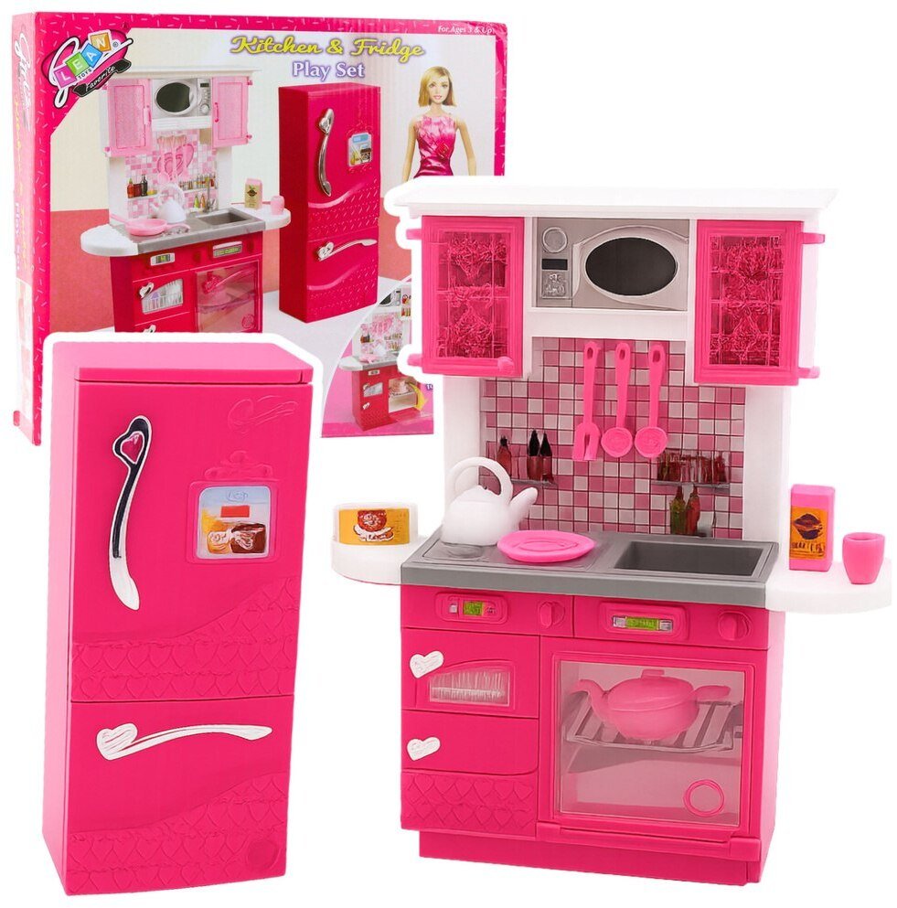 Zestaw Kuchnia Dla Lalek Lodówka Piekarnik Akcesoria Różowe