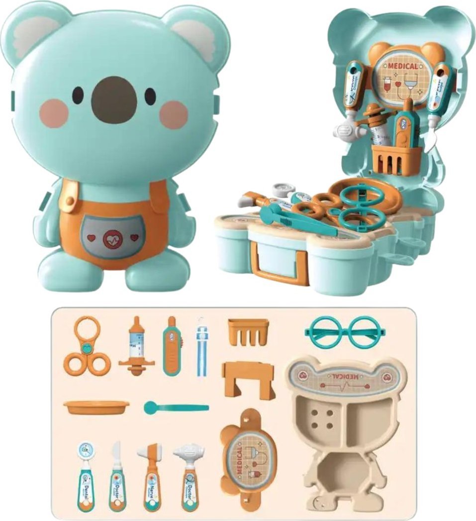 ZESTAW LEKARSKI MIŚ KOALA PRZENOŚNY OKULARY STRZYKAWKA DLA DZIECI