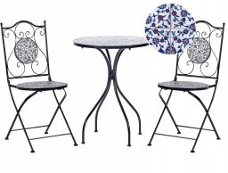 Zestaw mebli balkonowych CAMPRENA to doskonałe połączenie stylu i użyteczności, które wzbogaci każdy balkon czy patio. Jego eleganckie czarne wykończenie oraz ceramiczny wzór mozaiki wprowadzą do Twojej przestrzeni wyjątkowy vintage'owy urok, tworząc przytulne miejsce do relaksu.