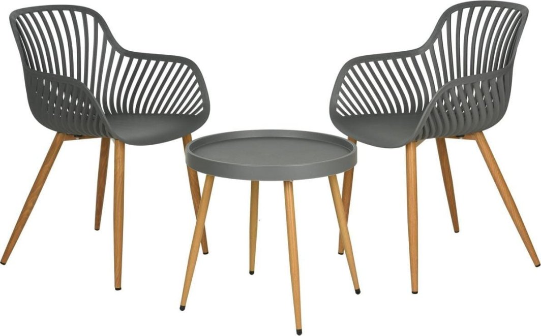 Odkryj elegancki zestaw mebli balkonowych, który składa się z nowoczesnego stołu oraz dwóch wygodnych krzeseł w stylowym szarym kolorze. Idealny do relaksu na świeżym powietrzu, zestaw ten doskonale sprawdzi się na balkonach, tarasach oraz w ogrodach, łącząc funkcjonalność z estetyką.
