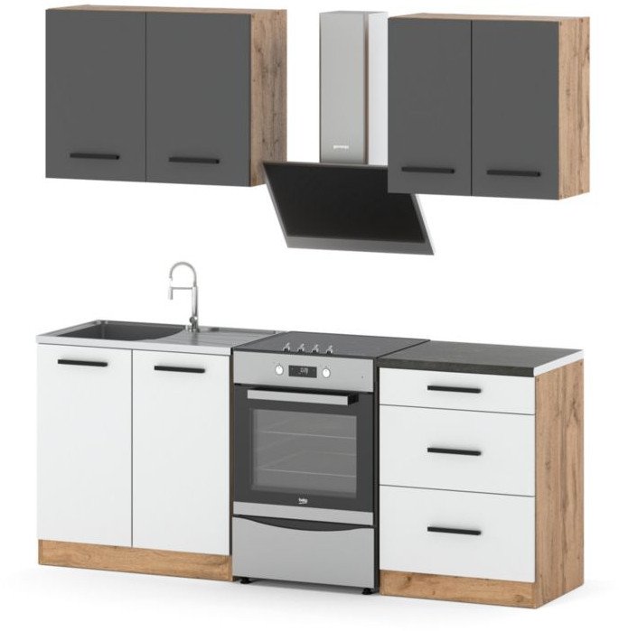 Zestaw mebli kuchennych modułowy z blatem mały 2m wotan szary biały mat