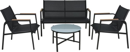Zestaw mebli ogrodowych Elegia to doskonały wybór dla tych, którzy marzą o eleganckiej i komfortowej przestrzeni do relaksu na świeżym powietrzu. W skład zestawu wchodzi dwuosobowa kanapa, dwa fotele oraz stół, co sprawia, że idealnie nadaje się zarówno na taras, jak i do ogrodu, oferując wygodne miejsce dla czterech osób.