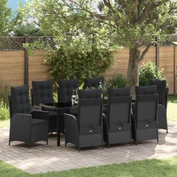 Zestaw mebli ogrodowych 9-częściowy z poduszkami czarny polirattan