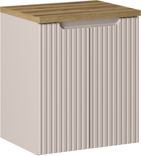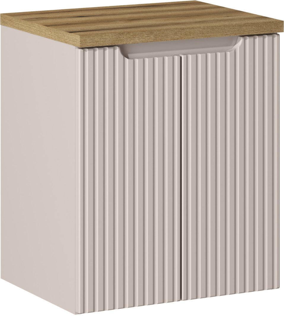 Der Möbelset SET-NOC B OAK 50CM D ist ein hervorragender Vorschlag für Personen, die auf der Suche nach eleganter und funktionaler Badezimmerausstattung sind. Das Element der Nova Cashmere Kollektion besticht durch sein modernes Design und hohe Verarbeitungsqualität. Mit einer Breite von 50 cm und einer Tiefe von 40 cm fügt es sich perfekt auch in kleinere Räumlichkeiten ein. Die Farbgebung des Sets in Kaschmirmatt und Coast Evoke Eiche verleiht ihm einen geschmackvollen Charakter und betont den modernen Stil sowie die Eleganz. Die Fronten mit vertikalen Fräsungen verleihen dem Set einen besonderen Charme und bringen einen Hauch von Luxus. Das Set besteht aus zwei Elementen, wobei das erste (Komponente 1) mit der Artikelnummer NOVA CASHMERE 82-50-2D ein Unterschrank ist, der Stauraum für Kosmetika und Badezimmeraccessoires bietet. Die zweite Komponente (Artikelnummer NOVA OAK A 89-50) ist eine Arbeitsplatte, die sich perfekt in den Rest des Sets einfügt und ein praktisches Ausstattungsmerkmal darstellt. Die Griffe in Kaschmirfarbe verleihen den Möbeln ein elegantes Aussehen und erleichtern die tägliche Handhabung. Das Set erfüllt höchste Qualitäts- und Funktionalitätsstandards und ist die ideale Lösung für Personen, die modernen Design und Benutzerkomfort schätzen.