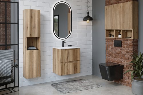 Zestaw meblowy 80cm z umywalką meblową SKY to znakomite połączenie nowoczesnego stylu i funkcjonalności, które doskonale sprawdzi się w każdej łazience. Dzięki swojej kompaktowej konstrukcji, ten zestaw jest idealnym rozwiązaniem do mniejszych przestrzeni, oferując jednocześnie wystarczająco dużo miejsca na przechowywanie niezbędnych akcesoriów łazienkowych.