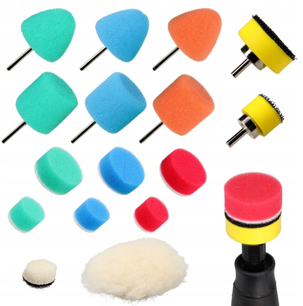 ZESTAW MINI KOŃCÓWEK GĄBEK POLERSKICH DO POLEROWANIA DETALI 16EL