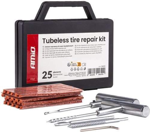 Zestaw naprawczy AMIO-04692 jest kompaktowy i gotowy do użycia zarówno w warsztacie, jak i w trasie. To idealne rozwiązanie dla osób, które często podróżują i chcą być przygotowane na niespodziewane sytuacje związane z uszkodzeniem opon. Minimalizuje przestoje i koszty związane z wymianą opon, pozwalając na szybki powrót na drogę.