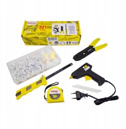 Zestaw narzędzi 321el. (pistolet na gorąco, miarka 3m, opaski zaciskowe, piła do metalu)