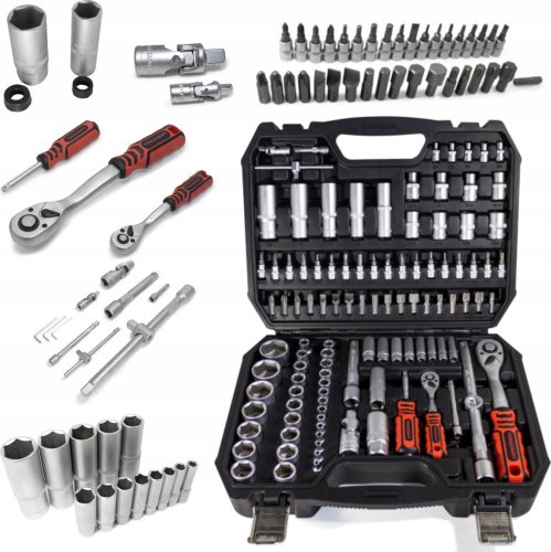 W skład zestawu wchodzą zarówno nasadki 1/4", jak i 1/2", co czyni go wszechstronnym narzędziem do różnych zastosowań. Zestaw zawiera: