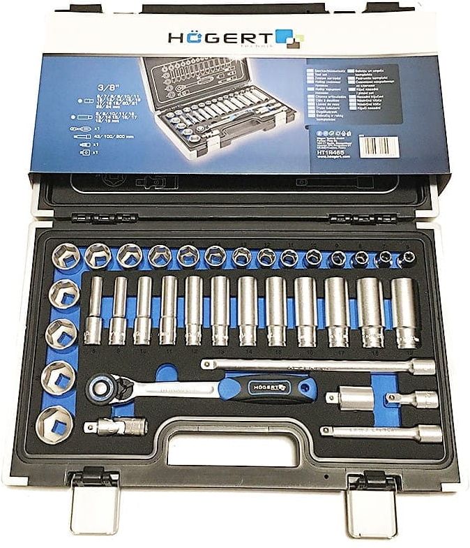Zestaw 36 nasadek i końcówek Hogert to, odporne na odkształcenia narzędzia wykonane ze stali stopowej chromowo-wanadowej (CrV), natomiast końcówki wkrętakowe ze stali S2. Mechanizm zapadkowy grzechotki posiada 72 zęby i wykonany został ze stali stopowej chromowo-molibdenowej (CrMo). Dzięki takiej stali narzędzia mogą pracować z dużym obciążeniem. Wszystkie te nasadki w połączeniu z popularną grzechotką tworzą zgrany zespół, który potrafi poradzić sobie nawet z tymi trudno dostępnymi nakrętkami. Narzędzia umieszczono w walizce z metalowymi zamkami i zawiasami, wnętrze walizki zostało wykonane z pianki technicznej. Dzięki temu narzędzia nie przesuwają się podczas transportu.
