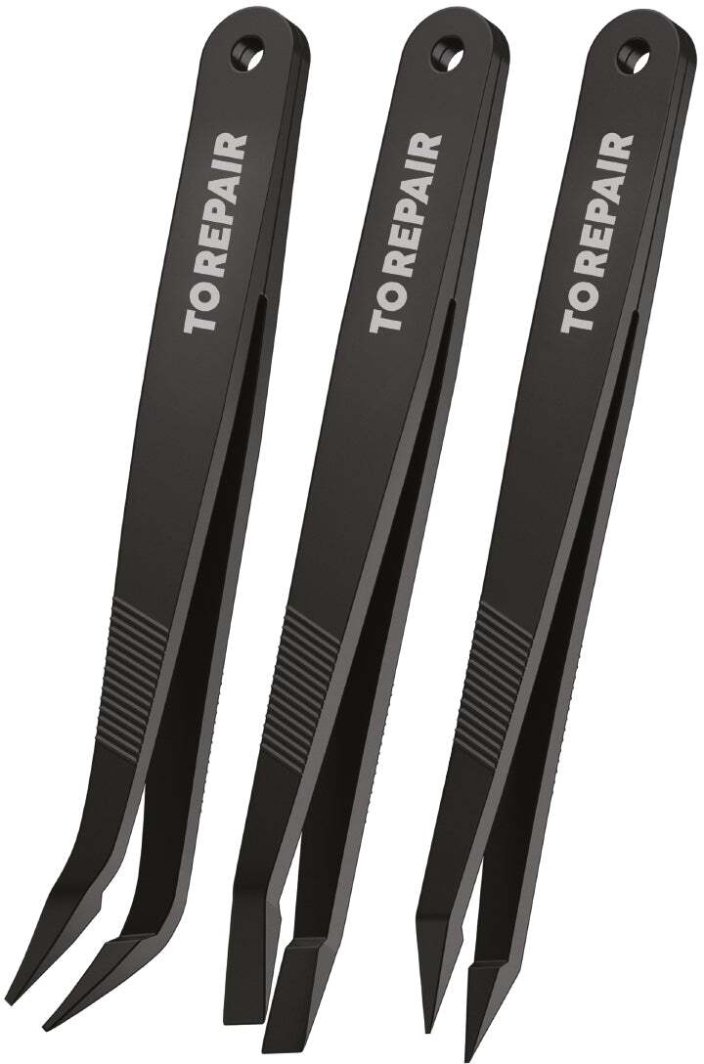 W skład zestawu wchodzą trzy różne rodzaje pincet, które umożliwiają precyzyjne chwytanie, przenoszenie oraz ustawianie komponentów elektronicznych. Dzięki nim, prace wymagające dokładności stają się znacznie łatwiejsze i bardziej efektywne.