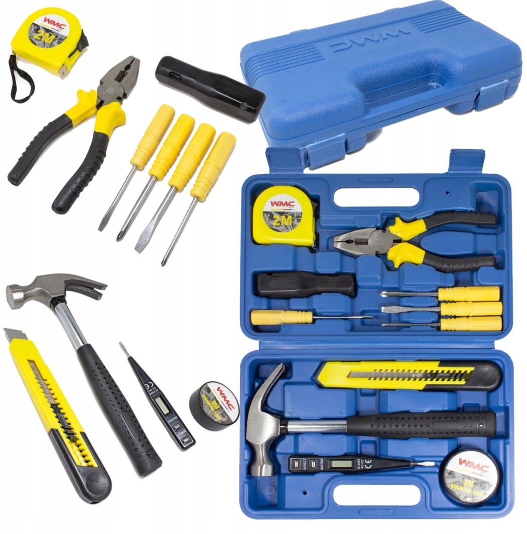 W skład zestawu wchodzą różnorodne narzędzia, które są niezbędne w każdym gospodarstwie domowym: