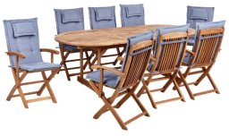 Beliani Zestaw ogrodowy dla 8 osób MAUI II z poduszkami Drewno akacjowe Niebieski