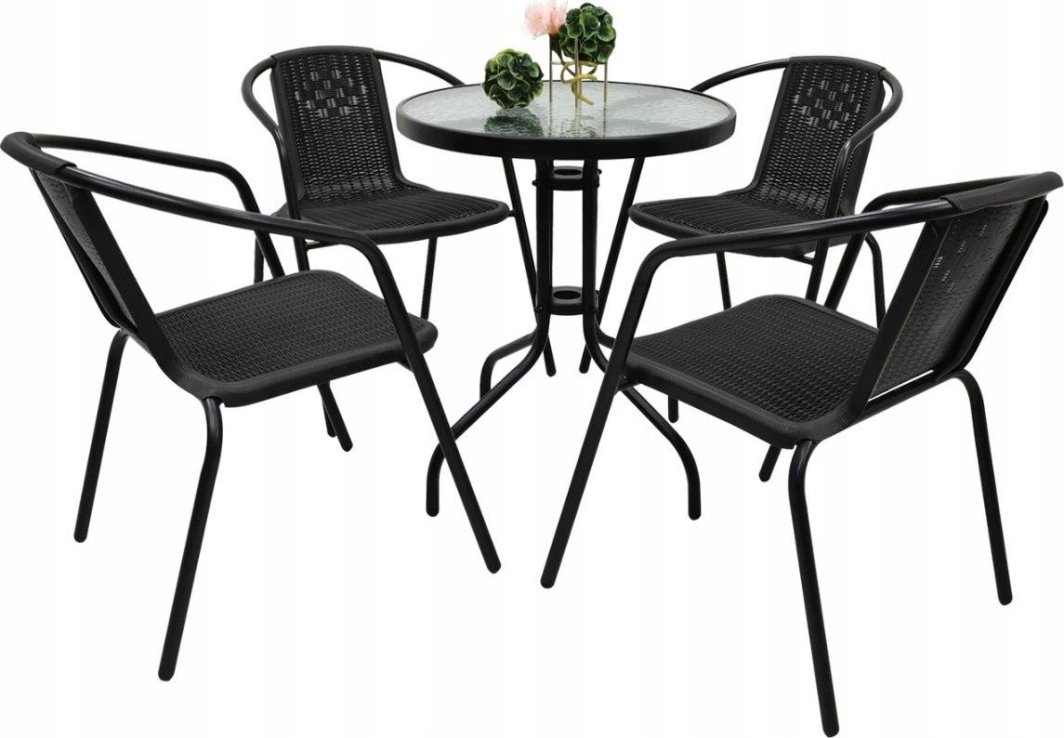 Zestaw ogrodowy kawowy na taras dla 4 osób stół fi90 i krzesła czarny
