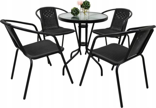 Zestaw ogrodowy kawowy na taras dla 4 osób stół i krzesła czarny