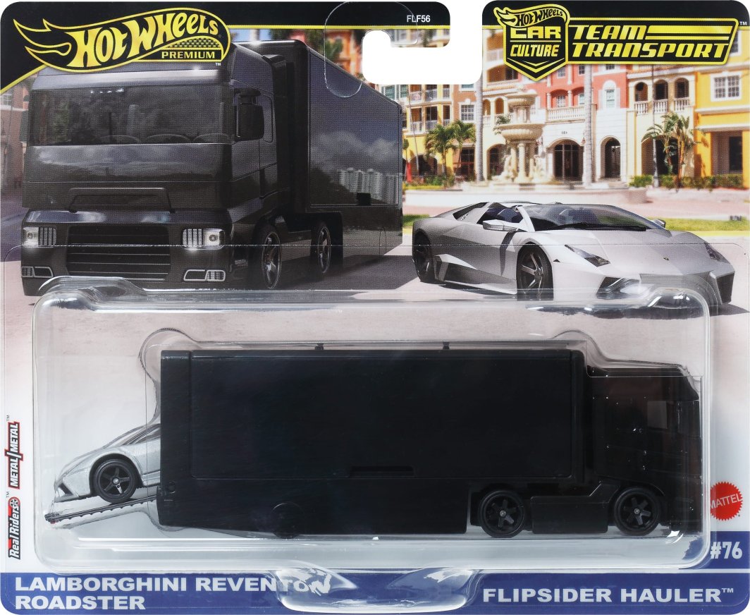Hot Wheels Premium Team Transport to niezwykła oferta dla pasjonatów motoryzacji oraz kolekcjonowania modeli. W skład tego zestawu wchodzi model Lamborghini Reventon Roadster oraz transporter Flipside Hauler, które zachwycają zarówno detalami, jak i eleganckim designem.