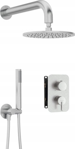 Zestaw prysznicowy Deante, wykonany z mosiądzu oraz stali nierdzewnej, zapewnia trwałość i odporność na uszkodzenia. Wykończenie w stali szczotkowanej nie tylko dodaje elegancji, ale także ułatwia codzienną pielęgnację. Dodatkowo, technologia PVD zastosowana w procesie nanoszenia powłok zwiększa estetykę i trwałość armatury.