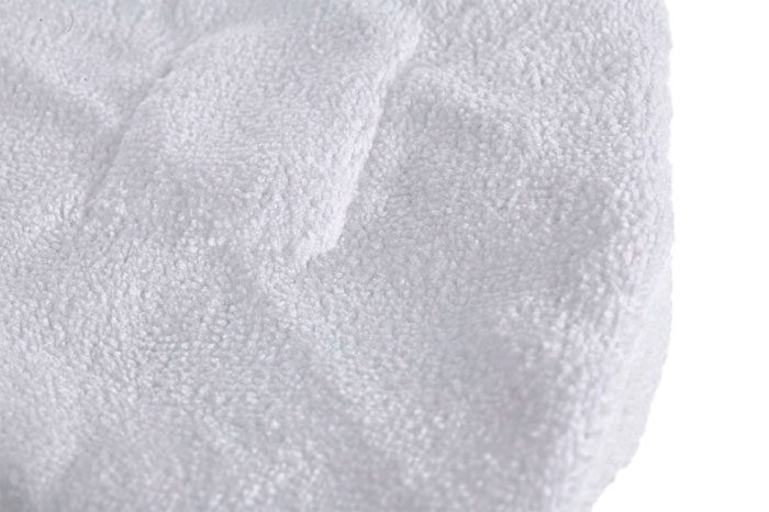W zestawie znajdują się dwie białe ściereczki, wykonane w 70% z poliestru i w 30% z poliamidu. Ściereczki zostały wykonane z myślą o czyszczeniu przy użyciu pary - są chłonne i trwałe. Użyta w nich mikrofibra dodatkowo wspiera efekt czyszczący - bez użycia detergentów.