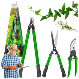 Narzędzia zostały wykonane z wysokogatunkowej stali, co zapewnia ich długotrwałość oraz efektywność cięcia. Dzięki temu możesz być pewien, że zestaw posłuży Ci przez wiele sezonów, a jego wydajność nie spadnie nawet przy intensywnym użytkowaniu.