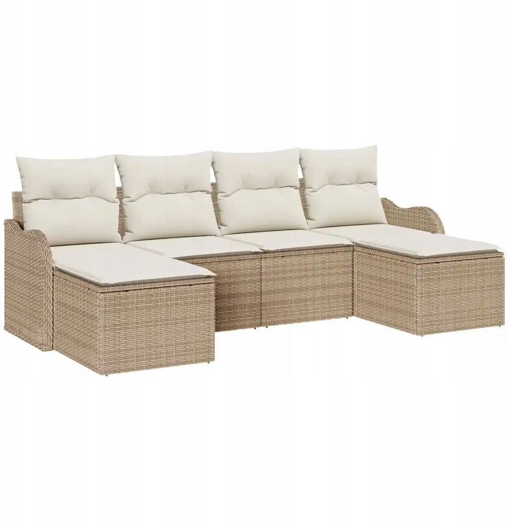 Zestaw siedzeń ogrodowych 6 elementów z poduszkami. Beżowy, rattan polietylenowy. Lumarko! możemy dostarczyć do Ciebie już jutro!Jeśli chcesz poznać dokładny czas dostawy, wprowadź kod pocztowy lub nazwę miejscowości.