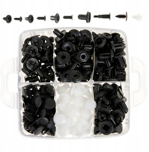 Zestaw spinek kołków klipsów do tapicerki to znakomite rozwiązanie dla każdego, kto zajmuje się naprawami oraz konserwacją wnętrza samochodu. W skład zestawu wchodzi 200 uniwersalnych elementów, które sprawdzą się w wielu zastosowaniach, od mocowania zderzaków po tapicerkę i fotele. Dzięki wysokiej jakości materiałom, te spinki gwarantują trwałość i niezawodność w każdych warunkach.