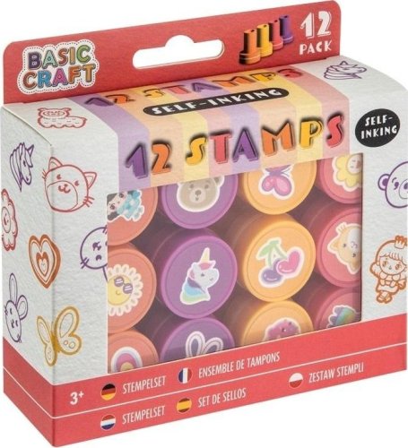 W opakowaniu znajduje się 12 stempli w kolorze różowym. Wymiary zestawu to 125x120 mm, a jego waga wynosi 1.01 kg, co sprawia, że jest łatwy do przenoszenia i przechowywania.