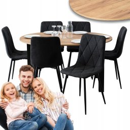 Zestaw Stół Rozkładany Kuchenny Krzesło Komplet Tapicerowane Czarne 6x