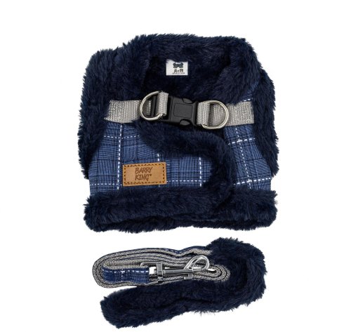 Zestaw, szelki+smycz, dla psa, granatowy, poliester/bawe�na, rozmiar L, ocieplane