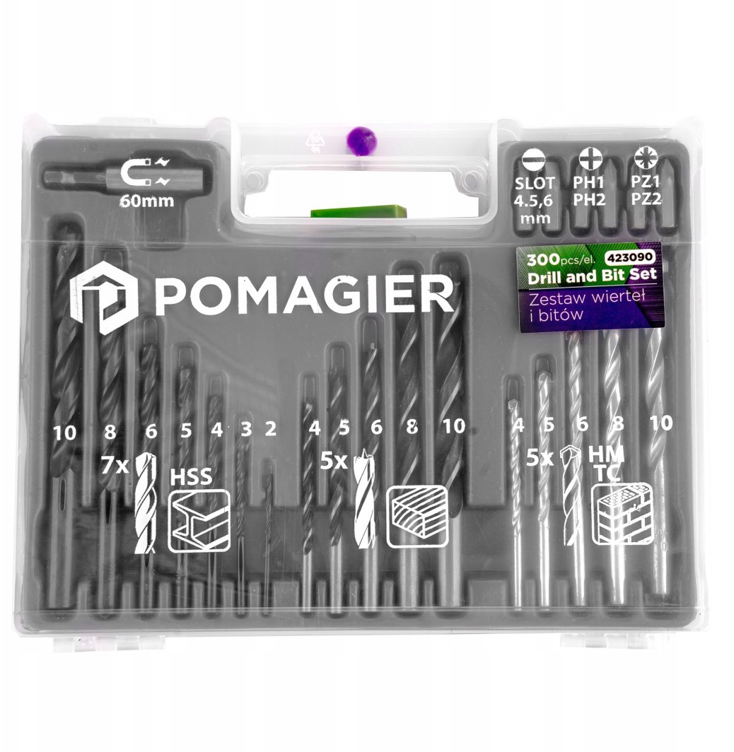 Zestaw zawiera wiertła w różnych rozmiarach, co pozwala na idealne dopasowanie narzędzia do konkretnego zadania. Wiertła do metalu mają rozmiary od 2 mm do 10 mm, wiertła do drewna od 4 mm do 10 mm, a wiertła do betonu od 4 mm do 10 mm. Dodatkowo, zestaw obejmuje różnorodne bity, w tym bity SLOT, PH oraz PZ.