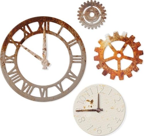 Zestaw składający się 7 wykrojników z motywami zegara, trybików oraz wskazówek. Pozwolą Ci pięknie ozdobić wiele projektów rękodzielniczych takich jak prace scrapbookingowe oraz home decor np. albumy oraz ramki. Prezentowane w zestawie wzory są bardzo uniwersalne i pasują do rozmaitych projektów na przeróżne okazje.